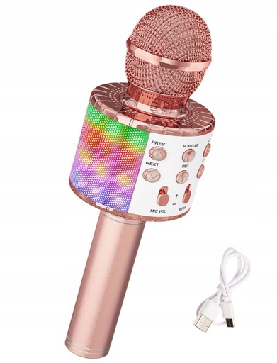 Nasz mikrofon karaoke jest świetnym wyborem dla twojego dziecka i nie tylko , jest to nowy model i posiada wiele zalet co go wyróżnia w tle innych . Posiada unikatowe , delikatne podświetlenie które nada specyficznego klimatu podczas śpiewania . Pakowany jest już w nowszym , solidnym i kolorowym opakowaniu które nada się znakomicie na prezent . Dodatkowo nasz mikrofon posiada lepszą baterię o większej pojemności co pozwoli na dłuższy czas użytkowania . W tym modelu występuje profesjonalny mikrofon z funkcją PVM ( Pro Voice Mikser ) dzięki czemu jest błyskawiczna reakcja na mowę oraz czysty dźwięk bez zakłóceń . Malowanie wykonane jest lepiej niż w poprzednich modelach , jest trwalsze i wyglądowo prezentuje się lepiej .