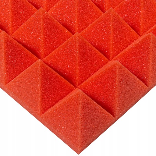 Kupując produkt z tej oferty, otrzymujesz 1-sztukę pianki akustycznej Piramida (bez kleju) w kolorze czerwonym (arbuzowym) o wymiarach: długość 50 cm x szerokość 50 cm i wysokość 5 cm