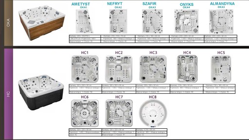 Model Amethyst mieści do 2 osób dzięki 2 wygodnym leżankom. Łączna ilość 39 dysz masujących zapewnia dokładny, skuteczny i relaksujący masaż całego ciała. Jacuzzi wyposażone jest w ozonator z lampą UV, które dezynfekują i utrzymuje wodę w ciągłej czystości. W wyposażeniu standardowym znajduje się wielobarwne oświetlenie LED, anatomiczne zagłówki, wodospad, dotykowy panel sterowania typu Touch, tytanowa grzałka elektryczna, pokrywa termiczna, system audio sterowany za pomocą smartfona Aquatic AV z subwooferem. Elegancji dopełniają wytrzymałe panele boczne w różnych kolorach do wyboru.