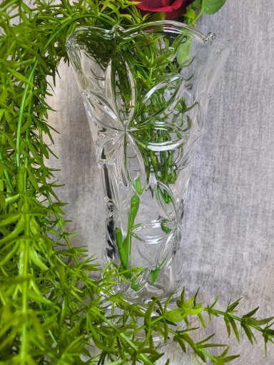 Wazon dekoracyjny, na kwiaty został wykonany z wysokiej jakości szkła przypominającego kryształ. Wazon idealnie nadaje się na kwiaty żywe/sztuczne; może służyć jako dekoracja na środek stołu lub jako element całej aranżacji.