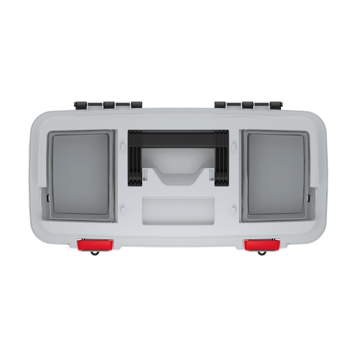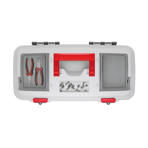 Przezroczysta pokrywa organizera z wytrzymałego poliwęglanu.