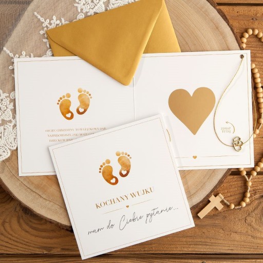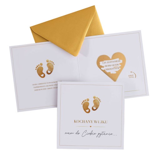PROŚBA ZDRAPKA na Chrzest CZY ZOSTANIESZ MOIM OJCEM CHRZESTNYM Złote Stópki (+koperta)