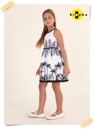 Okrągły dekolt , odkryte ramiona . Zapinana na plecach na zamek Lekki , lejący materiał zapewniający codzienną wygodę. Wzór na sukience w całości dodają jej lekkości i wyjątkowego charakteru. Model z wewnętrzną podszewką.