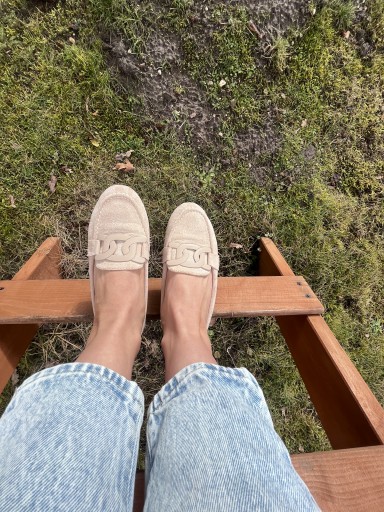 MOKASYNY DAMSKIE BEŻOWE Z ŁAŃCUCHEM