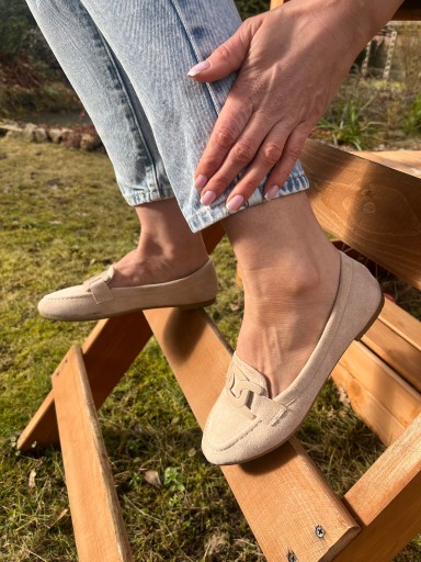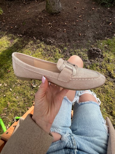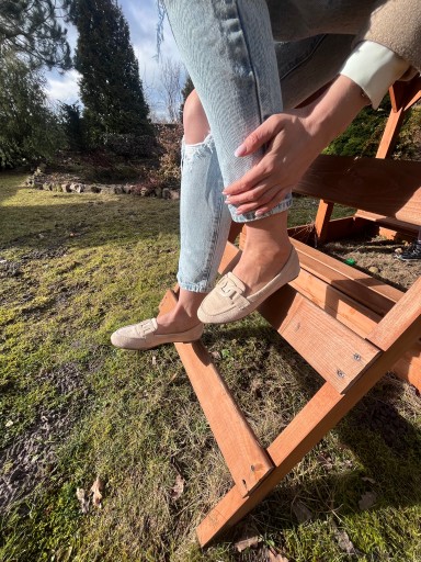 MOKASYNY DAMSKIE BEŻOWE Z ŁAŃCUCHEM