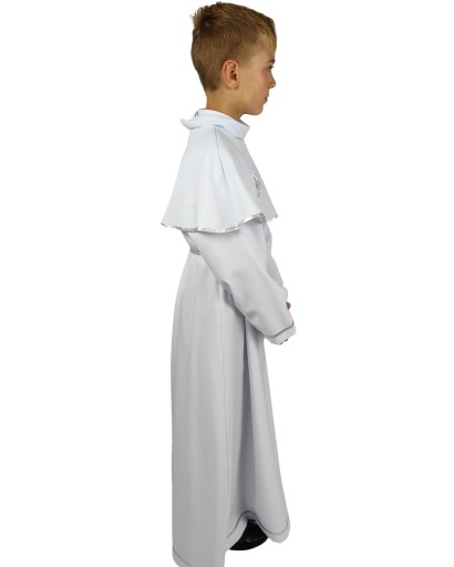 Polecamy albę uszytą z należytą starannością z delikatnej, białej tkaniny. Odpowiednia zarówno dla chłopca, jak i dla dziewczynki.