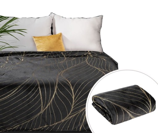 KOC MIKROFIBRA ZŁOTE LIŚCIE 150 X 200 CM CZARNY