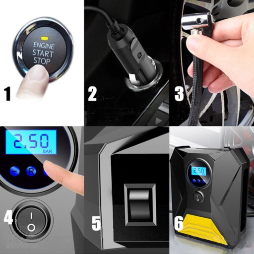 Kompaktowy i mocny kompresor o wysokiej wydajności. Dzięki dużej mocy możemy w bardzo krótkim czasie napompować koła samochodu, motocykla, a także wszelkiego rodzaju materace, pontony, piłki, czy inny sprzęt sportowy. Urządzenie jest zasilane prądem z gniazda zapalniczki auta.