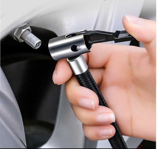 Jedno kliknięcie, aby bezpiecznie zacisnąć końcówkę kompresora na zaworze, bez ryzyka jego uszkodzenia.