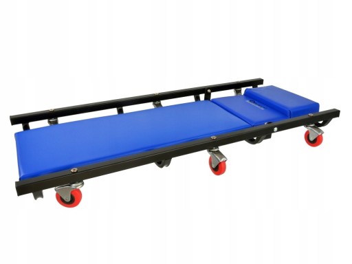 Leżanka umożliwia wygodną pracę pod podwoziem samochodu lub innego pojazdu. Miękkie tapicerowane podbicie, zapewnia dużą wygodę i komfort podczas pracy. Podgłówek regulowany w czterech pozycjach zapewnia optymalny dobór kąta pracy.