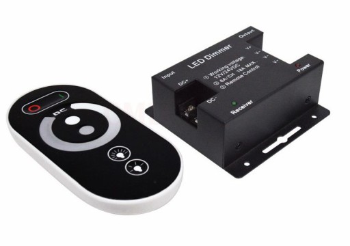 Sterownik posiada dotykowy pilot zdalnego sterowania z kołem jasności i szybkim wybieraniem maksymalnej i minimalnej jasności świecenia.