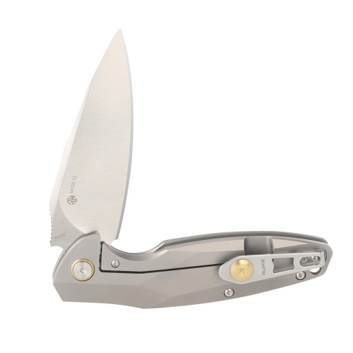 Wyprofilowana w estetyczny i ergonomiczny sposób rękojeść noża Ruike 105-TZ została wyfrezowana z ultralekkiego tytanu. Tytan TC4 łączy w sobie bardzo wysoką wytrzymałość mechaniczną z odpornością na korozję. Trwała blokada frame lock gwarantuje użytkownikowi bezpieczeństwo oraz niezawodność. Co istotne przy nożach z tytanową rękojeścią, blokada otrzymała stalową wkładkę, która ogranicza zużycie blokady. Element jest wymienny, dzięki osadzeniu go na śrubie torx.