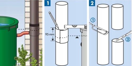 1. Zaznacz górną krawędź zbieracza na deszczówkę na rurze spustowej, 95 mm poniżej dolną krawędź.