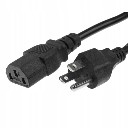 Złącza: 3-pinowa osłona żeńska (IEC320 C13 / IEC C13) do 3-bolcowej wtyczki męskiej z uziemieniem (NEMA 5-15-P)