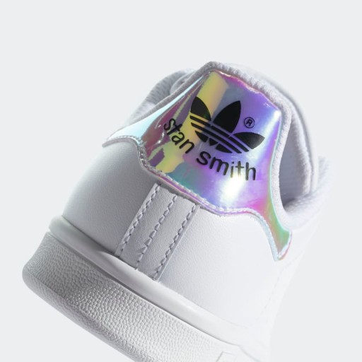 Kultowe sneakersy adidas Stan Smith w wersji dla młodzieży i kobiet. Buty sportowe, których nikomu nie trzeba przedstawiać, sneakersy ważne dla każdego pokolenia. Nowe wydanie adidas Stan Smith nadal posiadają tą samą ponadczasową sylwetkę i klasyczne dodatki jak logotypy Stan Smith na języku i pasku na pięcie oraz 3 perforowane paski na panelu bocznym, jednak różnią się nieco od oryginał, poprzez modne holograficzne zakładki na piecie.