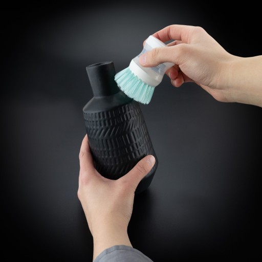 Szczotka do naczyń z dozownikiem jest bardzo funkcjonalnym przyrządem kuchennym. Dobrze wyprofilowany uchwyt zapewnia wygodę użytkowania. Posiada odkręcany pojemnik do wlewania płynu i specjalny przycisk do jego dozowania. Zaletą pojemniczka jest jego przezroczystość, dzięki czemu widać ile detergentu jeszcze w nim zostało. Płyn uwalnia się w momencie naciśnięcia przycisku w górnej części szczotki. Twarde włosie doskonale absorbuje płyn, wytwarza czyszczącą pianę i skutecznie, a przy tym delikatnie zmywa nawet najcięższe zanieczyszczenia.
