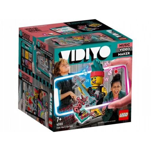 Pozwól dzieciom uwielbiającym taniec i występy przenieść się do świata pełnego teledysków. Zestaw LEGO® VIDIYO™ Punk Pirate Beat Box (43103) urozmaici każdą zabawę. Pobierz darmową aplikację, zeskanuj figurkę artysty muzycznego i odkryj sceniczny wizerunek pirata. Możesz też zeskanować Beat Bity, aby odblokować specjalne efekty, wyzwania i nie tylko. Dzięki temu zestawowi dzieci mogą tworzyć własne teledyski i udostępniać je innym twórcom w bezpiecznym środowisku. Zabawa w każdym miejscu Dzieci z przyjemnością ozdobią model Beat Box klockami LEGO. Mogą wykorzystać elementy takie jak kotwica, skrzynia ze skarbem i piracki okręt albo stworzyć własne dekoracje. W składanym Beat Boxie można przechowywać Beat Bity i mini figurkę, więc zestaw doskonale nadaje się do zabrania w podróż. Twórz własne teledyski Dzięki zestawom LEGO VIDIYO dzieci mogą wcielić się w reżyserów, producentów i gwiazdy własnych teledysków podczas bezpiecznej zabawy. Pozwól im rozwinąć kreatywność przez nagrywanie teledysków pełnych muzyki, ciekawych postaci, piosenek, ruchów tanecznych i odlotowych efektów.