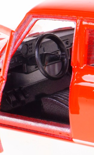Model wykonany jest z metalu z dodatkiem plastiku. Posiada otwierane drzwi, gumowe opony.