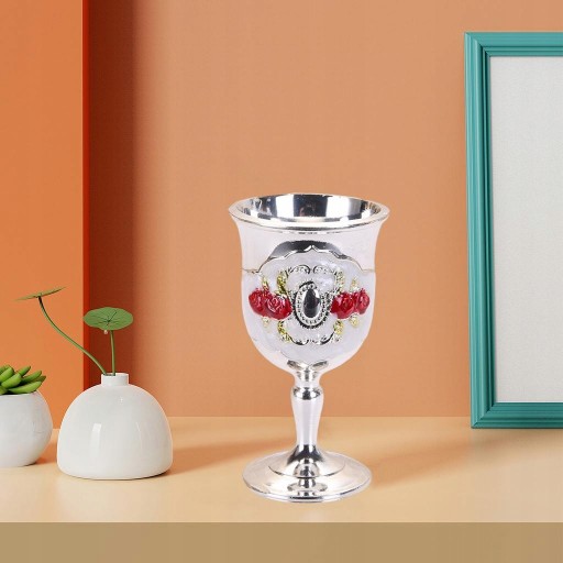 Metalowe Czara Kasa, Rzeźba Wzór Handmade Cup Bar Kolacje Partie Decor Czerwony Kwiat Srebrny Biały