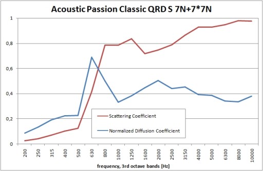 - Dzięki zastosowaniu dyfuzorów duże czoło fali akustycznej rozbijane jest w różnych kierunkach na wiele "małych" fal. Zjawisko to można porównać do działania falochronu na morzu, który nie pochłania fali, lecz rozbija ją na mniejsze, o już niedestruktywnej sile. Tutaj dzieje się to jeszcze skuteczniej, w sposób kontrolowany, bazujący na sekwencji QRD opracowanej przez M. Schroeder'a.