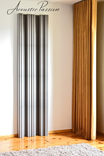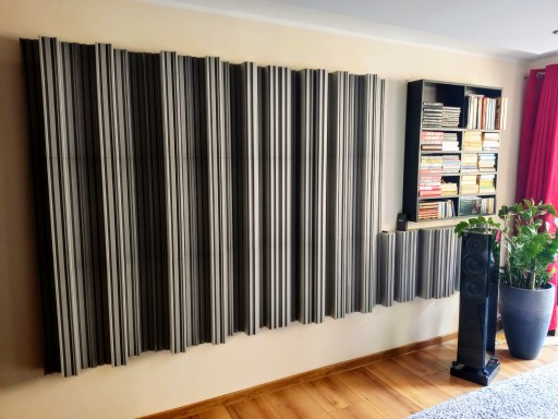 - Minimalistyczny design nawiązujący swoimi pionowymi liniami do modnych lameli, ale w przeciwieństwie do lameli nazywanych „akustycznymi”, nasze są prawdziwymi dyfuzorami bazującymi na sekwencji QRD Schroeder'a.