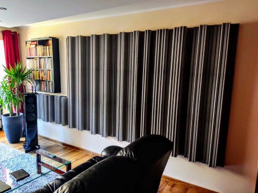 - Dodatkowo te rozbite, cichsze fale nie interferują już tak efektywnie z dźwiękami bezpośrednimi z zestawów głośnikowych, dzięki czemu nie wpływają negatywnie na brzmienie systemu audio, jak ma to miejsce w przypadku odbić od gołych ścian.