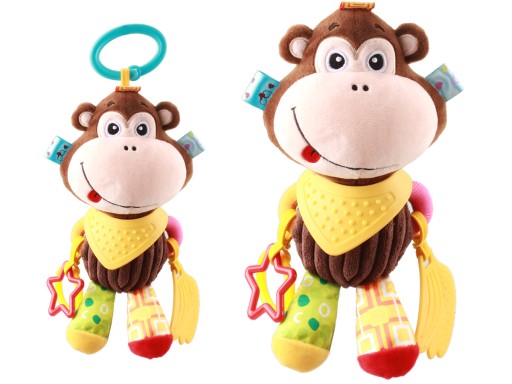 - małpka ma zdejmowany elastyczny gryzaczek-śliniaczek ze strukturą, który z pewnością przyniesie ukojenie podczas ząbkowania,
