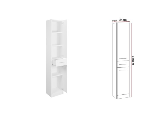 - Wysoka szafka z uniwersalnymi drzwiami i szufladami na metalowych prowadnicach
