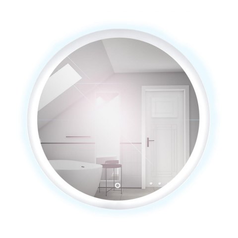 - Okrągłe lustro łazienkowe z dotykowym oświetleniem LED mierzy 60 cm szerokości/wysokości