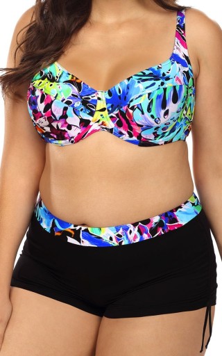 Spodenki czarne, na szerokiej gumie z lamówką w kolorze biustonosza, ściągane sznureczkiem.