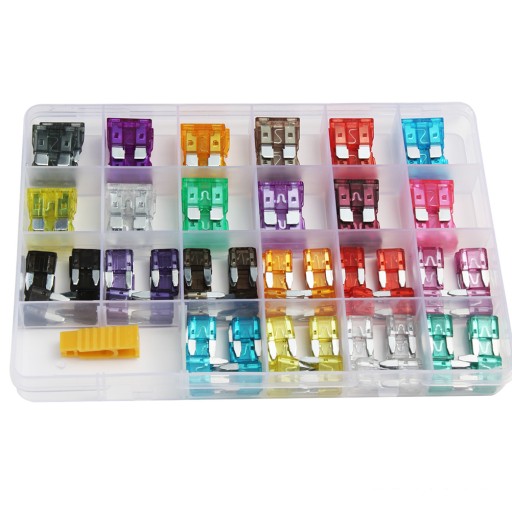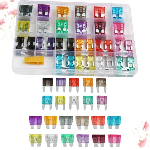 Przedmiotem jest zestaw mini bezpieczników samochodowych i są one powszechnie używane w większości samochodów i samochodów. Wykonane są głównie z trwałych materiałów cynkowych i aluminiowych i mogą być używane do ochrony samochodu i urządzenia elektrycznego przed zwarciem, przeciążeniem itp.