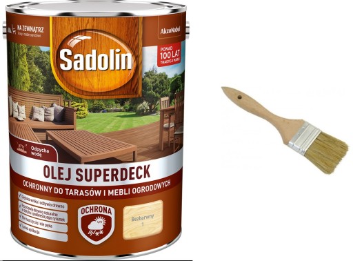 - Sadolin Olej Superdeck do mebli i tarasów to nowoczesny olej o dużej zawartości żywic przeznaczony do konserwacji i dekoracji tarasów drewnianych oraz mebli ogrodowych, a także innych powierzchni drewnianych na zewnątrz.