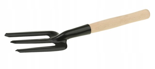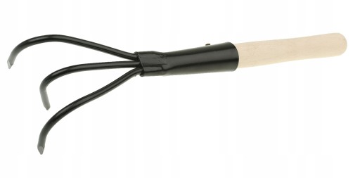 - Metalowy komplet narzędzi ogrodniczych, osadzone na krótkich, drewnianych trzonkach.