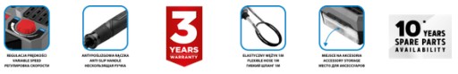 Funkcjonuje w oparciu o system akumulatorowy Energy+ oraz baterii litowo-jonowej o mocy 18 V.