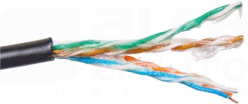 Kolor: czarny. Dedykowany do zastosowań: zewnętrznych. Wypełnienie: żelowe. Kabel wykonany z miedzi- wysoka jakość. Konstrukcja kabla: parowa 4x2, pary skręcone. Grubość żyły: 0,500mm. Wykonanie żył: drut miedziany [Cu]. Izolacja żył: HDPE 1,02mm. Grubość powłoki: 0,550mm. Średnica zewnętrzna powłoki: 5,50mm LDPE. Odporny na promieniowanie słoneczne UV - TAK. Testowany: pomiar wykonany na odcinku 90m za pomocą miernika Fluke Networks DTX-1800. Spełnia wymogi kategorii: 5e UTP. Dostępny również w wersjach: 5e FTP, 6 UTP i 6 FTP. Ilość w opakowaniu: 305m. Zgodny z normami: ISO/IEC 11801, EN 50173, EIA/TIA 568-B.2. Zgodny z RoHS. Impedancja w zakresie: 1-100MHz: 100 Ω. Max. rezystancja w zakresie: 1-100MHz: 9,5 (Ω/100m). Delay Shew (ns/100m): ≤45.