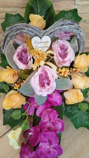 Zamawiasz ogólnie kolorystykę kompozycji, która może lekko się różnić od przedstawionych zdjęć (w razie jakiś braków kwiatków).