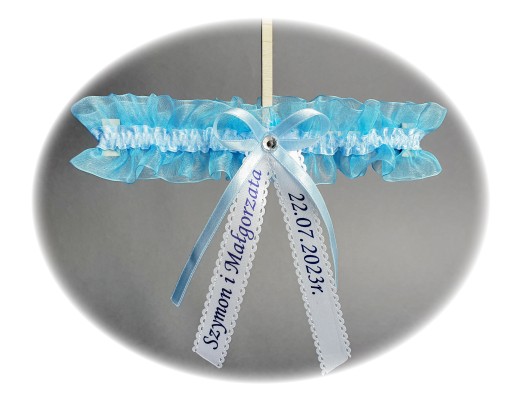 Podwiązka z nadrukowanymi imionami i datą. Kupując moją podwiązkę sprawicie Państwo sobie, że ten dzień będzie wyjątkowy i piękny, a podwiązka stanie się pamiątką na całe życie.