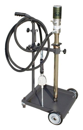 Przewoźny zestaw przystosowany do zasobników 50-60 kg, przeznaczony do rozprowadzania oleju o średniej i dużej lepkości: