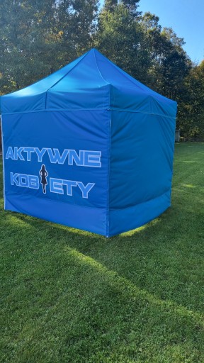 - Powłoka namiotu (poszycie górne) wykonana jest z impregnowanego poliestru DISCOVERY o gramaturze 235 g. Istnieje możliwość nadruku indywidualnej grafiki na materiale,