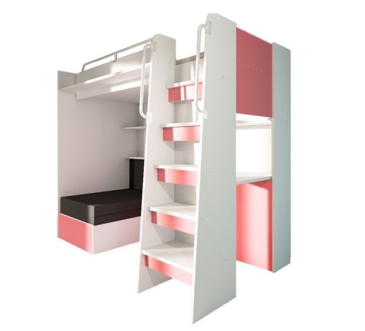 Łóżko piętrowe Kiki 7 wyróżnia sofa, która po rozłożeniu ma powierzchnię spania 70x180cm.