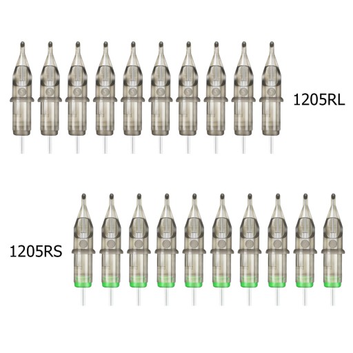 20 igieł do tatuażu chirurgicznego ze stali chirurgicznej i plastiku medycznego. Pakowane pojedynczo.