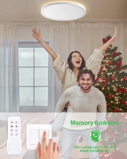 Ta okrągła lampa sufitowa zapamiętuje światło przed centralnym jej za pomocą pilota i przełącznika ściennego, dzięki czemu nie trzeba za każdym razem sprawdzać temperatury barwowej i przewodowej.