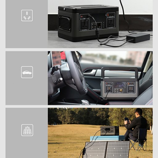Ta przenośna elektrownia może być ładowana przez wyjście do panelu słonecznego lub może być w pełni naładowana za pomocą zasilacza sieciowego lub ładowarki samochodowej.