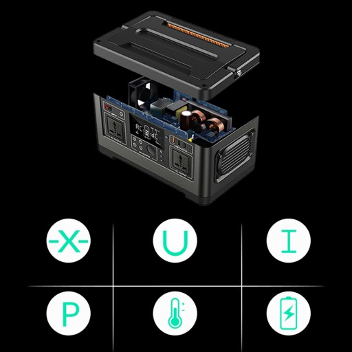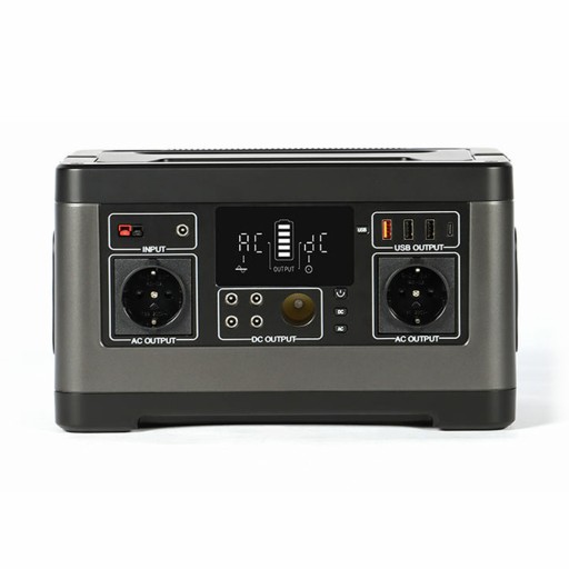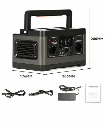Przenośny generator P63 obsługujący wiele wyjść: 1* QC3.0 USB(5V-9V/2A), 2*USB(5V/A2), 1*Type-C(5V-9V/2A), 4* DC5521(12V/2A) ), 1*interfejs automatyczny (12V/10A), 2*AC (230V, znamionowa 500W). Obsługuje ładowanie 11 urządzeń jednocześnie.
