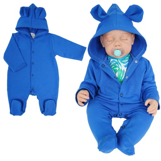 Kombinezon niemowlęcy z kapturkiem z uszkami.