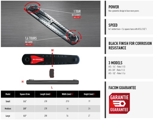 • W przypadku występowania przeszkód umożliwia zastosowanie grzechotki ręcznej lub klucza udarowego o większej przestrzeni roboczej