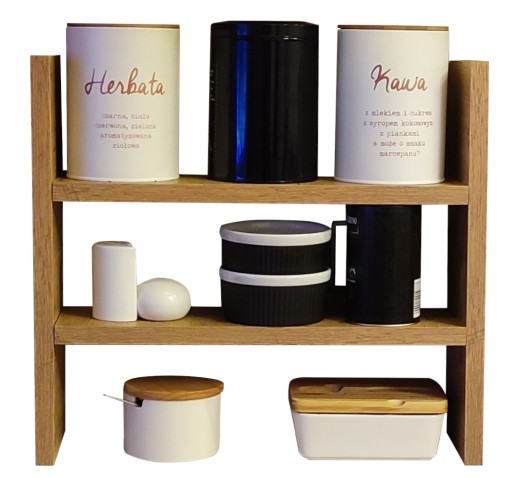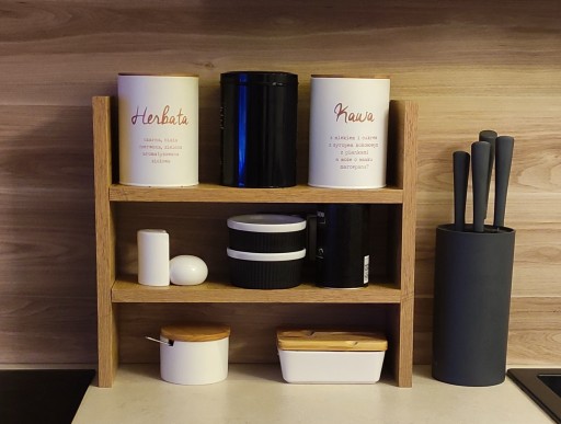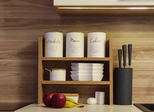 Dzięki niewielkim wymiarom nie sprawi nam żadnego problemu postawienie półki na blacie kuchennym a zarazem możemy umieścić na niej bardzo dużo przedmiotów które stoją na blacie, dzięki czemu zyskamy dużo wolnego miejsca.