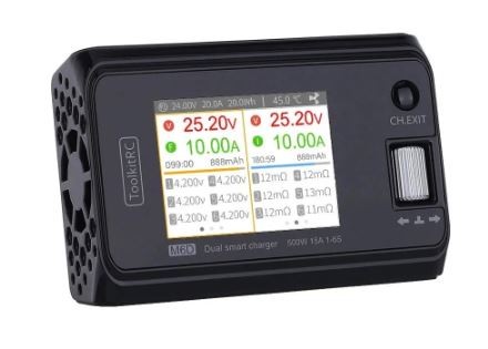 ToolkitRC M6D to uniwersalna podwójna ładowarka przeznaczona do akumulatorów Li-Ion, LiPo, LiFe, LiHV, Pb i Ni-MH. Zasilana jest przez złącze złącze DC XT60, wyposażona została w dwa gniazda XT60 do podłączenia akumulatora oraz dwa złącze balansera. Ładowarka może obsługiwać pakiety od 1S do 6S w przypadku akumulatorów Li-Ion, LiFe, LiHV, LiPo oraz od 1S do 16S dla Ni-MH. Pozwala na ładowanie dwóch pakietów jednocześnie i oferuje moc do 500 W (w przypadku pracy synchronicznej pozwala to na ładowanie prądem do 25 A lub 2 x 15 A przy pracy asynchronicznej). ToolkitRC M6D ma wbudowany wyświetlacz LCD 2,4" oraz przyciski i pokrętło do sterowania urządzeniem. Chłodzenie w trakcie ładowania zapewnia aluminiowy radiator oraz wbudowany wentylator.
