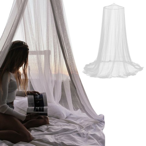 Duża, okrągła moskitiera ze stelażem, stanowi skuteczną ochronę przed insektami. Odpowiednia do zawieszenia nad łóżkiem jak i na zewnątrz np . do parasola. Łatwa w montażu, wykonana z wytrzymałego materiału poliestrowego. Przejrzysta, nie zaciemnia, wielokrotnego użytku, możliwość prania w pralce w temperaturze 30°C.