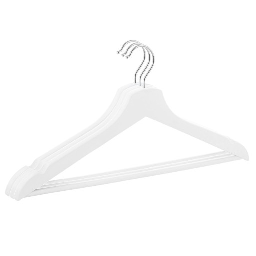 Opływowy kształt wieszaka sprawia, że ubrania stabilnie trzymają się jego powierzchni. Dodatkowym atutem produktu są specjalne wcięcia po bokach, dzięki którym bluzki, koszule i sukienki nie zsuwają się. Wieszak posiada także drewnianą poprzeczkę idealną do przewieszenia spodni.